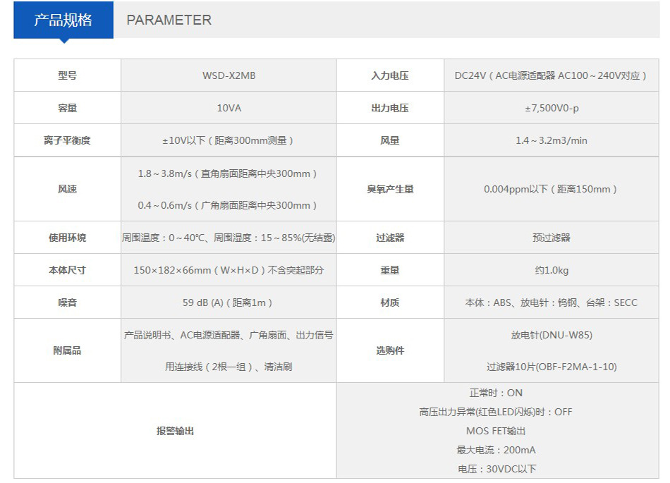 安装距离300(mm)离子风区有效范围300mm离子平衡度5